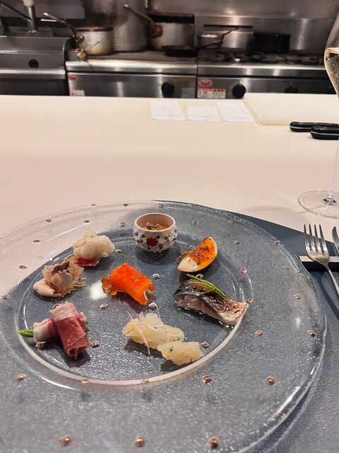 前菜盛り合わせ以降は、デザート含むメニューから好きな5種類を選ぶスタイル。基本的にグループで同じメニューを選び、デザートは各自好きなものを選べる。パスタ多めにもできるしメインだけにも、デザート無しなど構成は自由。