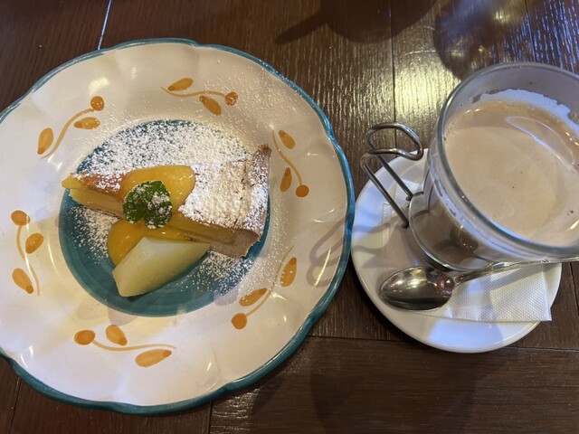 デザートはバナナと胡桃のケーキでした。カスタードのソースがかかっていますが、これがとても美味しいこと。お腹もいっぱいになり、とても幸せな気分でした。