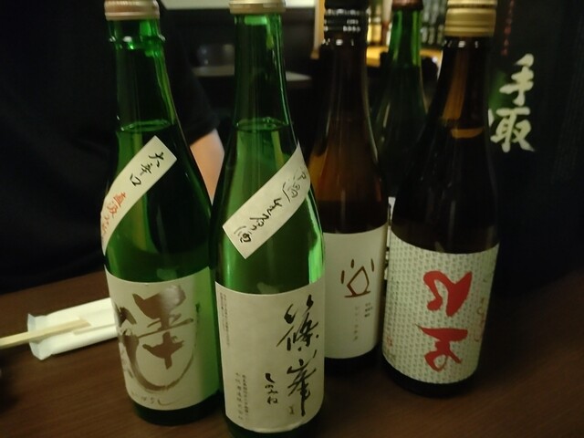 本日2軒目のため、いきなり日本酒で乾杯、地酒(四合瓶)のラインナップは、概ね市内たつみ清酒堂さんから入荷しているようです。