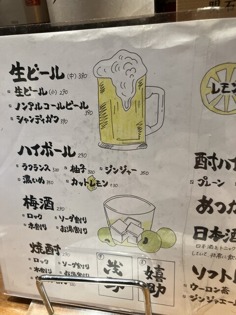 ふらりと三宮で居酒屋を探して、自分の嗅覚が反応したのでここにしました。ドリンクはビールが390円で、日本酒も揃ってますが4.、500円台と安い。お通しはいくつか選べます。店内は綺麗です。頼んだのはスルメイカの肝和、刺身7点盛り、鯛のお頭塩焼き、あら煮、ポテトフライ、牛串。どれも安いのに美味しいし、食材の良さを感じます。特にあら煮は身が圧倒的に多く食べ応えがありました。店員さんも活気があって、食事も良いペースで提供されてました。あとで調べたら人気店だったんですね。納得です。