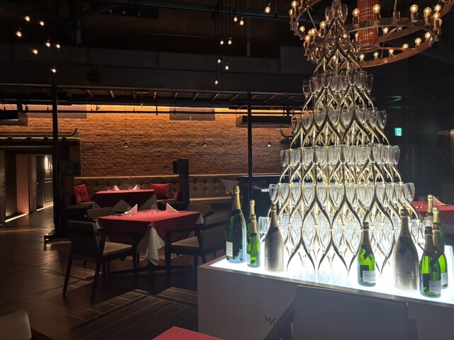 店内にはモエ・エ・シャンドンのシャンパンタワーも展示されていて、空間の華やかさを演出してくれています。