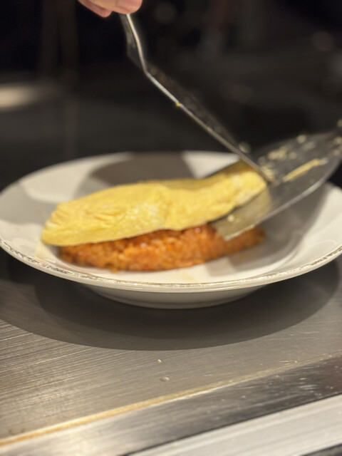 「両方食べたい!」を叶えてくれた〆の神対応 〆はガーリックライスかオムライスを選べるのですが、選べずに悩んでいたら「お二人でシェアされますか?」と提案してくださいました。 ふわとろのオムライスも、香ばしいガーリックライスも両方味わえて大満足!