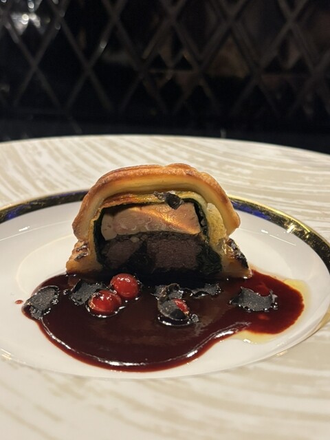 北海道稚内の蝦夷鹿のパイ包みは、、当然ですが全く臭みはなく、フォアグラが贅沢にのせられ、さらにトリュフの香りがとても高い一皿。