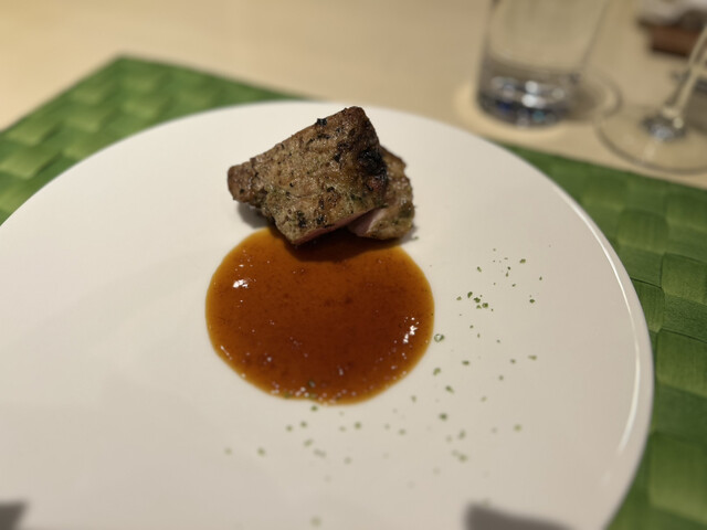 前回とコース内容はほとんど同じですが、少し変化あり。人参ムースは乗せてるパンがもっと薄切りでドイツパンのような中身が詰まったパンに変わってましたし、ムースも前回クミンを感じた気がするんですが今回はそれはなく甘味とマリネの酸味、オリーブオイルの香りが際立ってました。