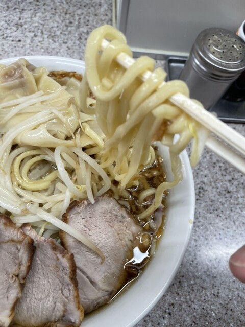 出てきたこの盤石の布陣よ。チャーシュー 煮卵 ワンタン もやしと隙がない。ムッチムチ。
