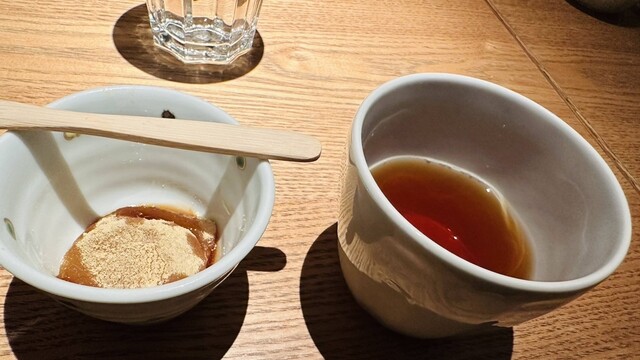 最後は黒蜜きなこのわらび餅。しっかりとコシのある(って言うのかな?)とろとろ感(?)うーん、うまく言えないけれど、とにかく美味しくて幸せ。一緒に出されたお茶が京都のほうじ茶だそうだけど、香ばしくて深い味わい。普段飲み慣れているほうじ茶とは別物。(私には)新感覚。