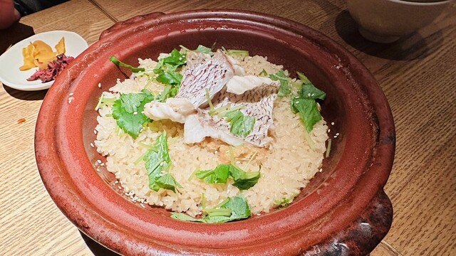 京都のおばんざい、京生麩の田楽、湯葉と豆腐のサラダ西京味噌ドレッシング、天ぷら、牛肉の朴葉味噌焼き…京料理を堪能。どれも彩り美しく美味しかった♪。そして鯛土鍋飯!鯛の風味と土鍋ご飯のコラボって最強でしょ◎。