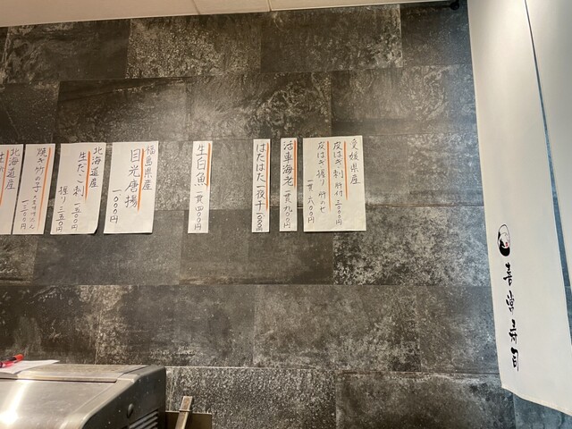 友達からお勧めされていた店。平日の開店直後に訪問。テーブル席2つにカウンター席。木の温かみのある清潔な店内。カウンターに座ると、ほんのり木(檜?)の香り。板さんの後ろは美しい墨黒の壁。モダンな要素も素敵。女性のおひとり様もチラホラ(わたし含め)。居心地良いし、明瞭会計、リーズナブルでコスパ最高だからだね。