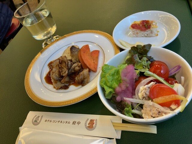 豊富なメニューからメインを一つ選び、ハーフブッフェをいただいて待ちます。