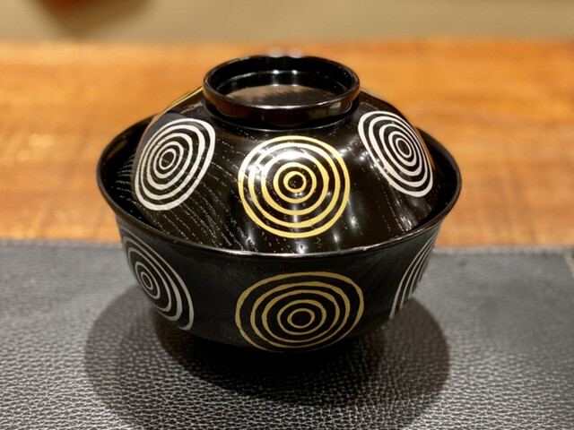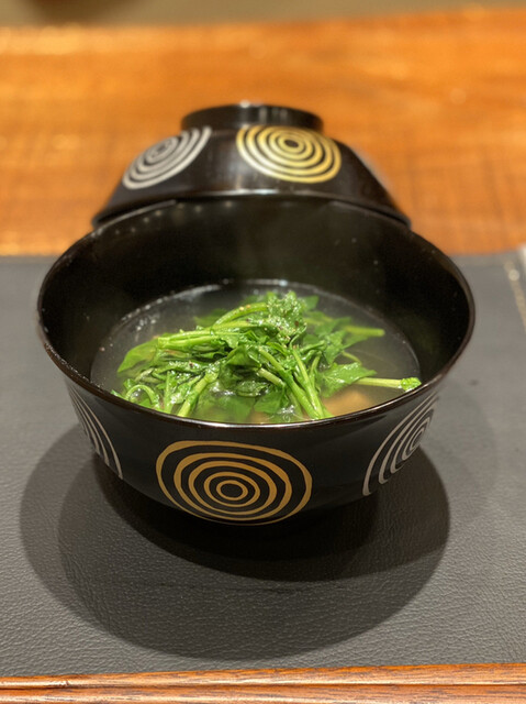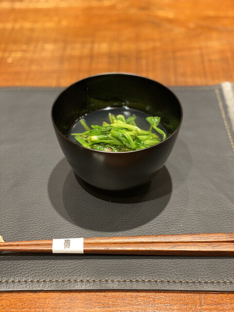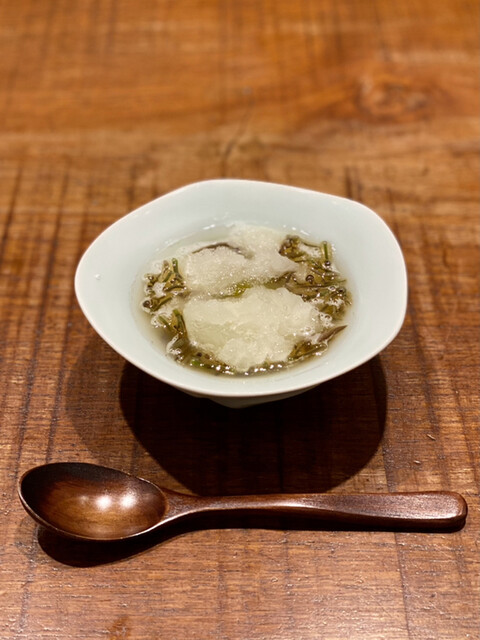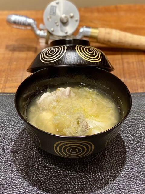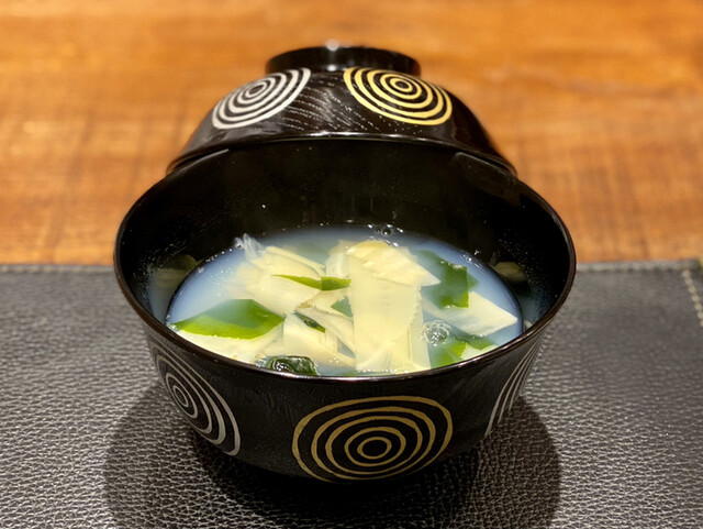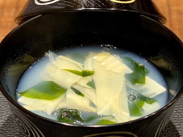 ・鱒の介とワカメのお椀、ハマグリ出汁のみで