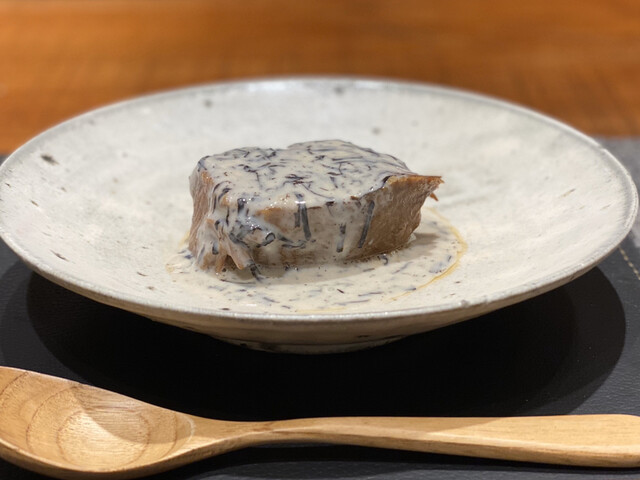 ・牛頬肉煮込み、国産トリュフと牛乳ソース