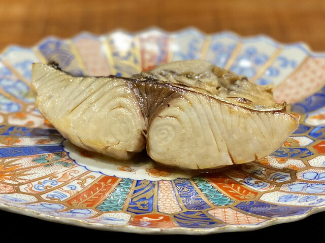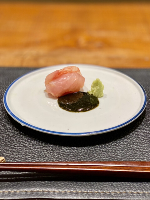 ・イシナギのお造り、たっぷり薬味とポン酢で