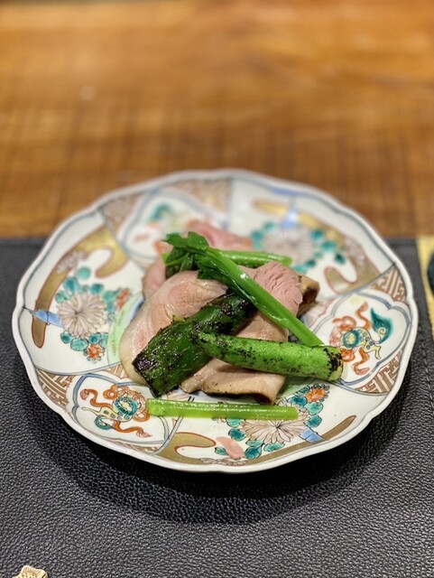 ・焼き茄子のサーロイン巻き、万願寺とうがらし添え
