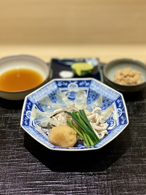 てっさをいろいろな角度で頂き、焼き白子はハフハフとww