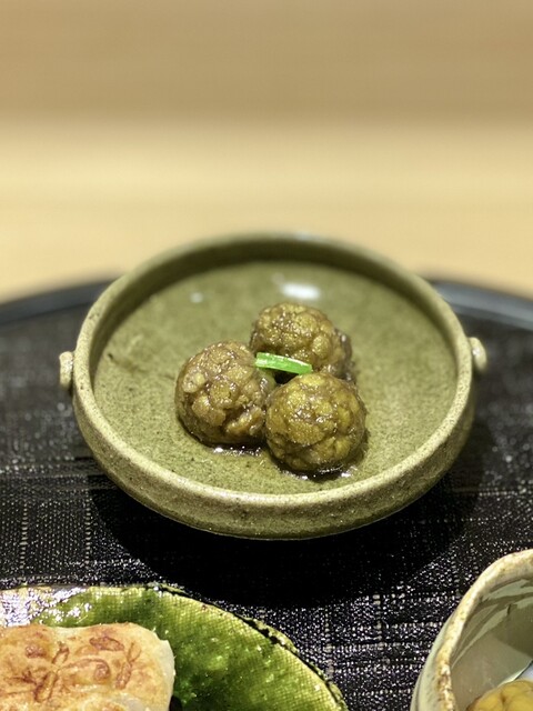 唐墨餅、蕗の薹の揚げ浸し、青海鼠と海鼠腸