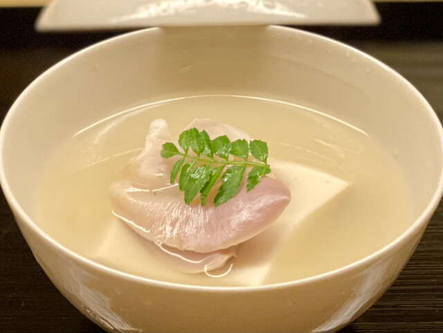 ・千葉の蛤、自家製色紙胡麻豆腐のお椀