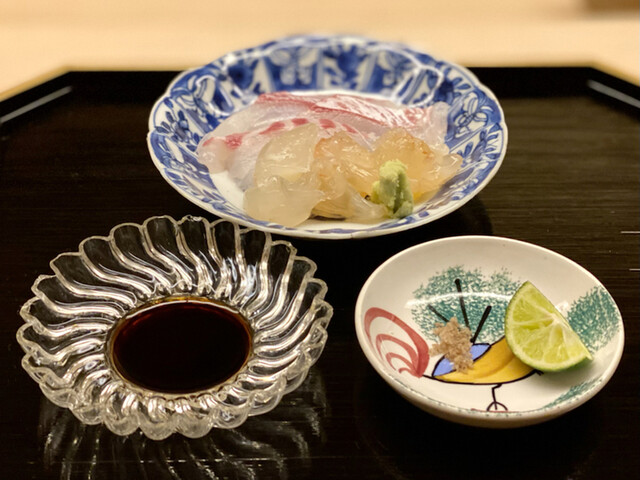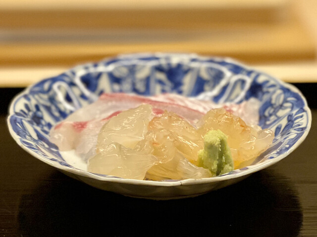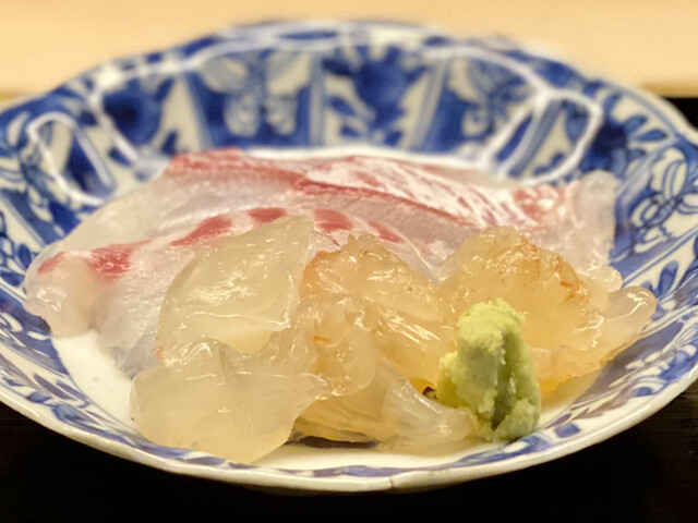 ・愛媛県の白甘鯛のお造り、由良の塩雲丹と共に