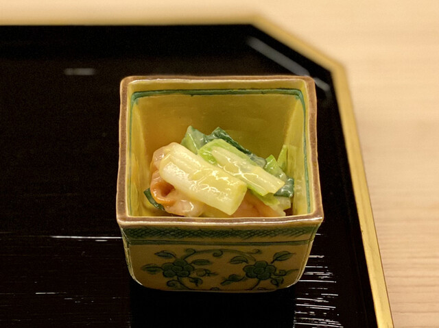 ・山口県の鮑と伊勢海老、蓮根のジュレ掛け