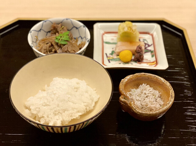 ・銀シャリ、生からすみ、じゃこ、煮鯖、香の物