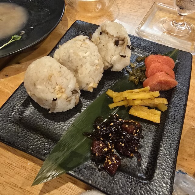 〆のおにぎりかと思って食べていると、まさかのラーメン提供❗