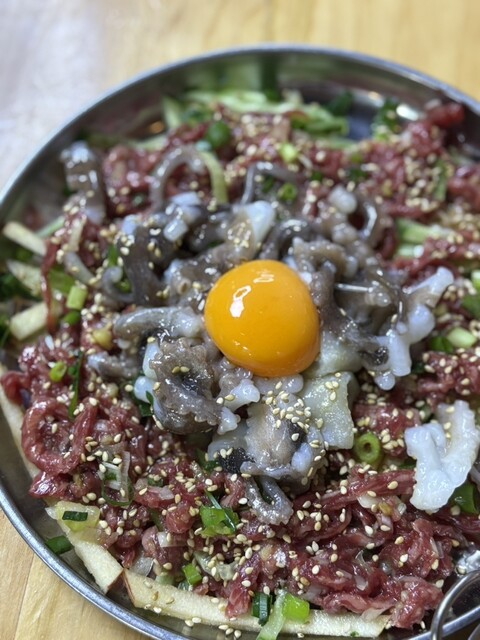 相変わらずの人気店で若い人を中心に賑わってました。前回ユッケが食べれなかったので事前にお願いして伺いました。ユッケは新鮮で本当に美味しい♪