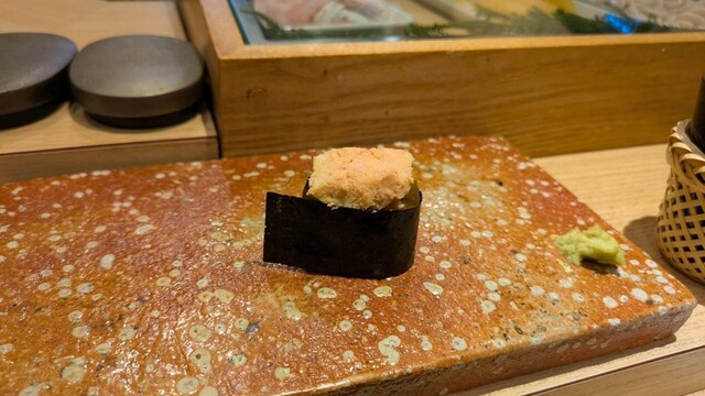 お腹の空きがあればと出してくれたものだったが、これがとんでもなく美味しかった。もちろん臭みなく処理されたあん肝でまろやかかつ甘みがあるのだが、これに奈良漬を合わせるという発想。食感がプラスされ、かつ旨味も倍増される印象。おいしかった。