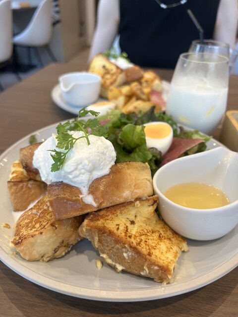 ジュワジュワのフレンチトーストにホイップ・はちみつがマッチしていておいしい。