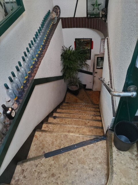 看板を目当てに進むとドアとメニュー表。ドアを開けるとそこには何故かウルトラマン。そこから階段を降りていくと2枚目のドア。店員さんが中から開けてくれました。