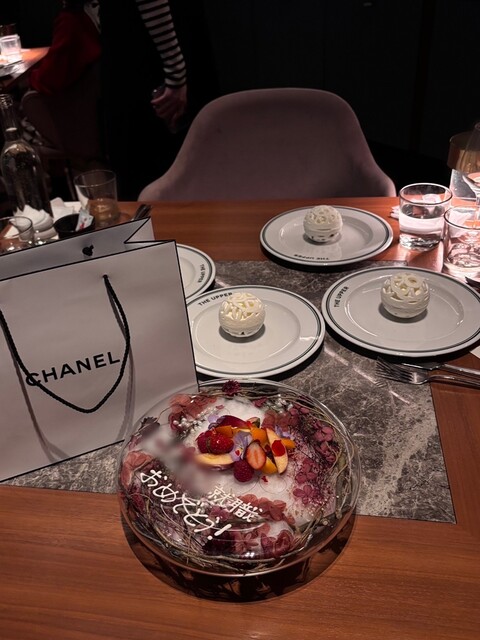 お祝いのプレートをお願いしていたのでデザートのタイミングで出してくれましたが、とっても素敵なプレートでした✨