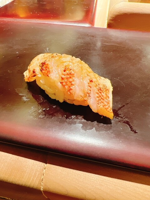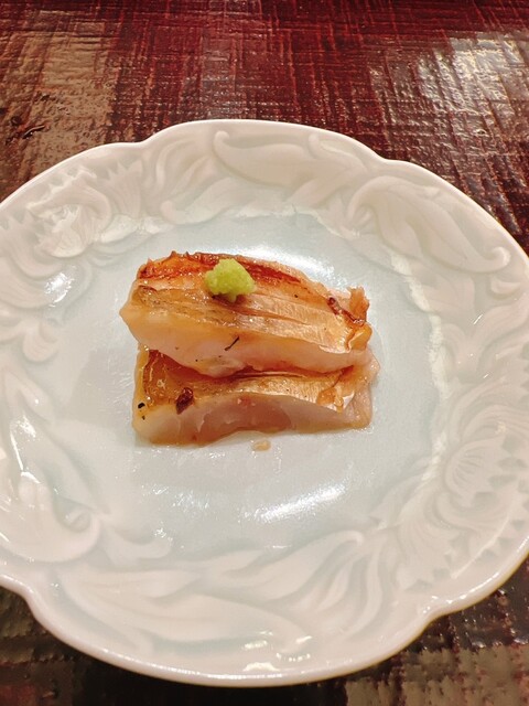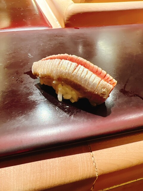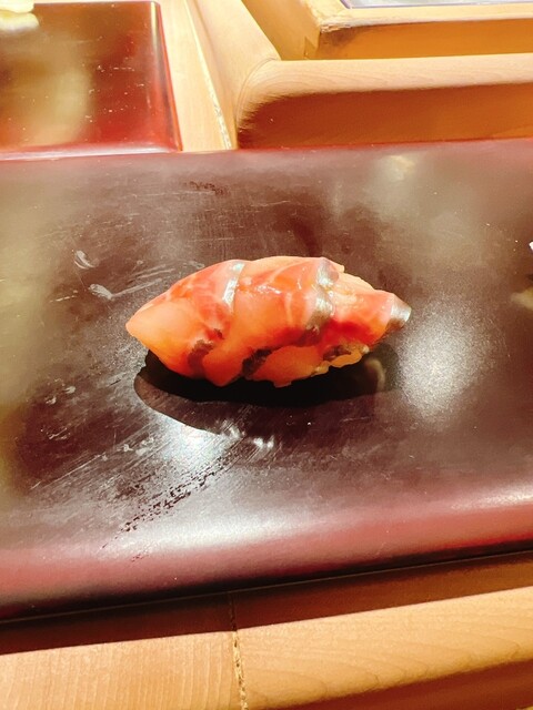 鮨以外もコースの一品もどれも美味しく、その中でもカワハギの肝醤油は本当に美味しかった。