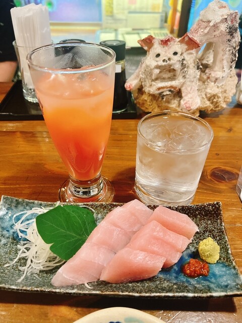 カジキが肉厚プリプリで刺身が700円、ユッケが500円と価格破壊。
