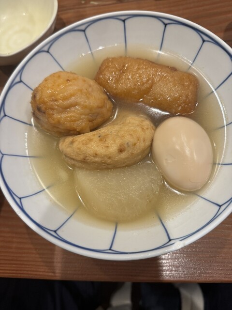 注文したのは、ごま鯖、おでんの盛り合わせ、姫鮑、いかしゅうまい。