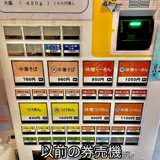 麺量は「並盛→200g」「並と中の間→250g」「中盛→300g」で、ここまでは全て同じ価格。