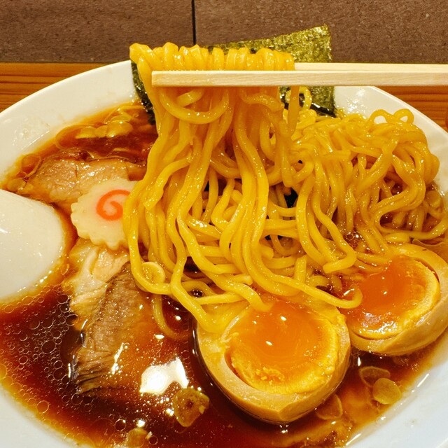 豚背ガラ・鶏ガラ出汁から取った出汁に、濃い口の生姜醤油をベースにしたカエシが合わせてある。