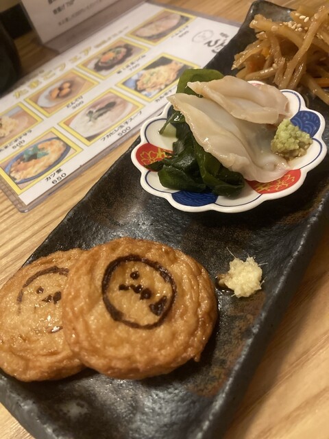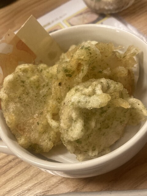 小皿で出てくるのが嬉しいですね。イカメンチはいつもいただきます。