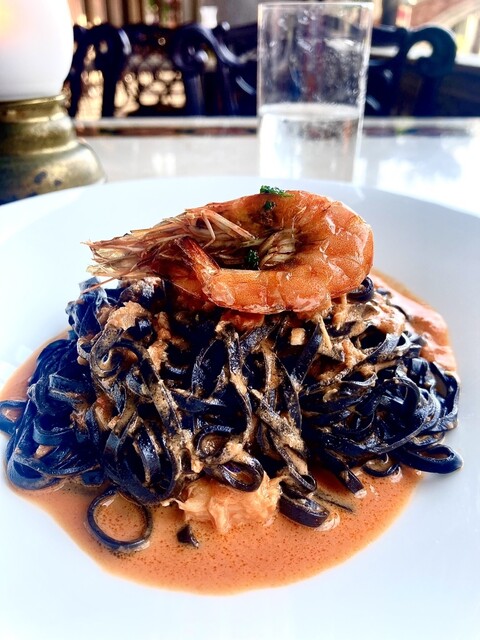 こちらはパスタもなじみのない種類を出すことがあります。本日はパッケリ。南イタリアの太い筒状のショートパスタです。これをウニクリームソースで和えました。数にして5きれ。でも食べ応えはありました。