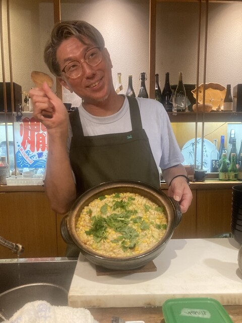 飲み友に誘われて、8人で訪問。季節の野菜を使った料理の数々に舌鼓。今日は糖度の高いとうもろこしを使って、さまざまなバリエーションをいただきました。それに燗酒が次々に提供されます。肉嫌いな私にも対応いただき、感謝です。