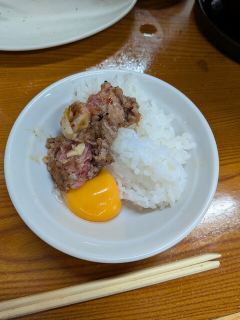 ほぼレアなラムをご飯と卵黄で混ぜご飯で満腹!