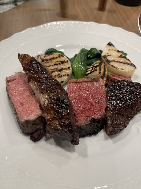 豆のスープ、ひよこ豆の粉をカリッと揚げ中はトロっとしたパニッサという料理からスタート。素朴て滋味深い味わい。リグリア風内蔵の煮込みは臭みがなく内蔵の旨みが凝縮された煮込みで絶品。続いてテスタローリというイタリア最古のパスタ料理。インドのチャパティを焼いてから茹でたようなものでクタクタのせんべいみたいな食感。豚肉の旨みと爽やかにほろ苦い菜花と合わせて独特の美味しさ。圧巻の肉グリルは近江牛リブロースと十勝若牛のイチボ。赤身肉の香りと旨み!最後は手捏ねうどんのようなウンブリチェーリというパスタ。ローカルの伝統的な品でトマトもスパイスもあまり使用せず素朴だが豪華な品々。最後はアイスクリームにグラッパのようなお酒をかけて頂いた。美味しいだけでなく、楽しく、イタリアについて学びたくなる素晴らしいディナー体験でした。