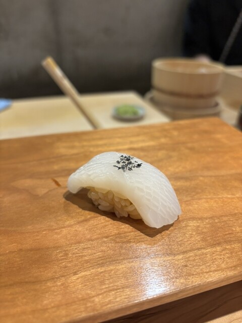 スミイカはレモンと竹炭塩で、しっとりとした食感と香ばしさ。25秒茹での車海老は中がレアな状態で、甘さが際立っていました。