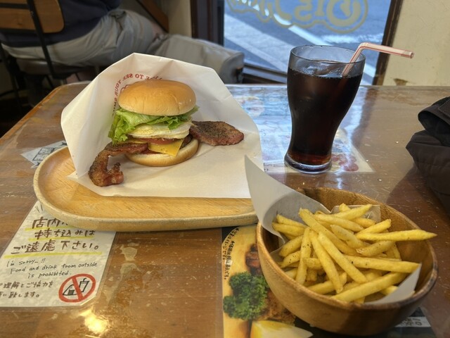 リアルバーガー(卵、チーズ、自家製照り焼きソース)