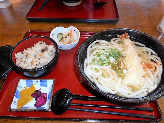 もーここの うどん喰う為に態々1時間かけて・・・・麺は博多うどん よりはコシがあるけど基本讃岐とかと比べると柔らかい そして丸天うどん 最高 母は海老天 もーねぇ ここは前に書きこしたけど揚げ物が旨いから天かす は当然まいうーーー