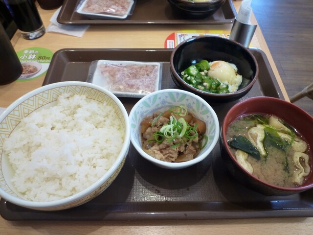 久しぶりに中津店で朝定食を食べました 母は卵掛け 私は まぜのっけ しかし母が温玉とオクラ付きと生玉と海苔変えてって 二人て590円安いんだけど米が硬かった これはダメ