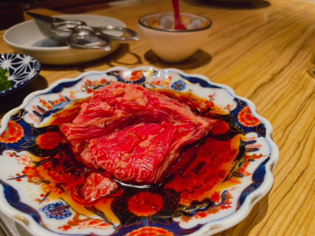 2番目の白桃のユッケは初であり、私の中では新鮮だった。桃は好みではないが、このユッケは桃の甘さが肉の下味とマッチしており、すぐになくなった。