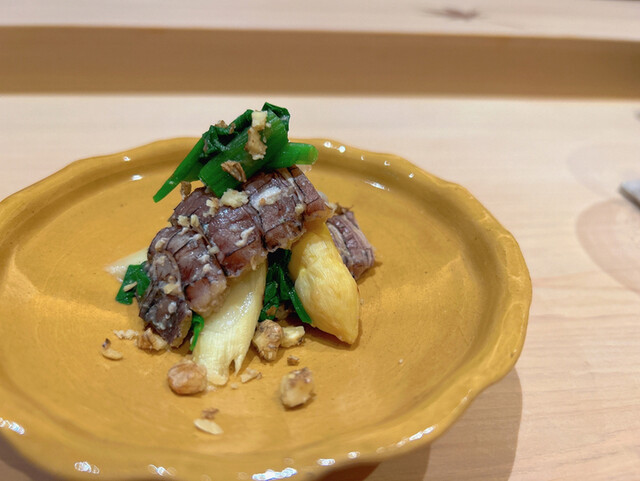 アカムツは昨年末にも頂いたが、今回は前回より脂の乗りが控えめでより赤身の味わいを堪能でき、歯応え/旨み共に素晴らしかった。