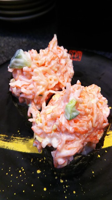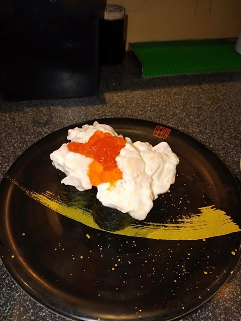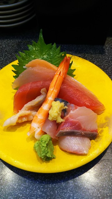 カンパチ×2、ハマチ、いくら、サーモン、海老マヨ、カニサラダ、甘海老、エンガワ
