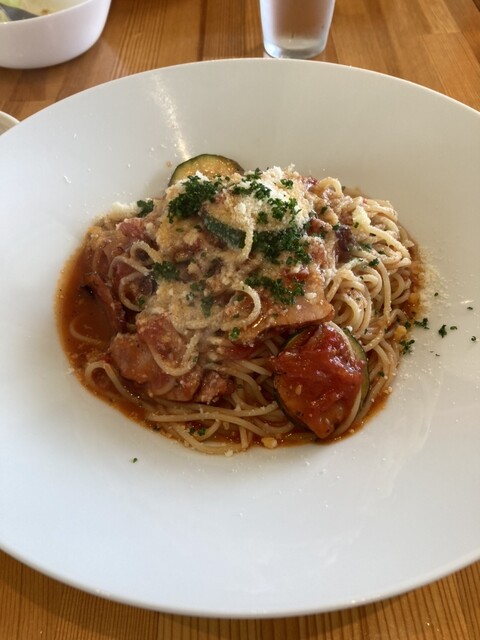 ⭐︎朝倉産のズッキーニとベーコンパスタトマトソース(1500円)