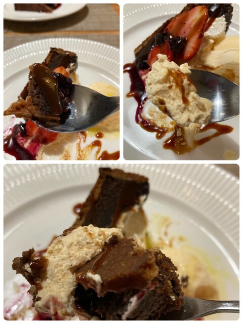 アイスには、オレンジオイル、チョコレートタルトには、ベリーが乗ってチョコソース、キャラメルソースがかかって、決して甘すぎることなく、見た目も美しく、こんな女の人いたら間違いなく惚れるほどの魅力的な味わい