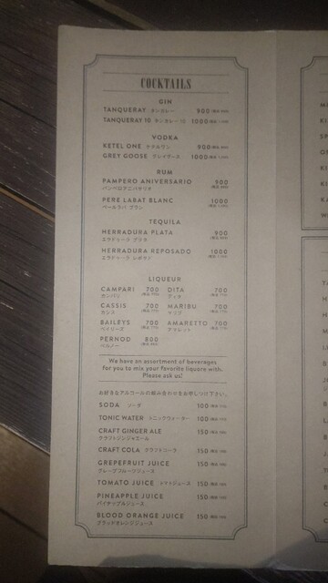テーブルに着いてからドリンクを先に注文しました。その後に前菜が提供されます。