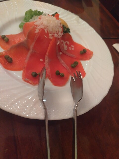 お酒のおつまみとして、『はじめてセット1980円』と『スモークサーモン1320円』と『春巻き』等を注文しました。